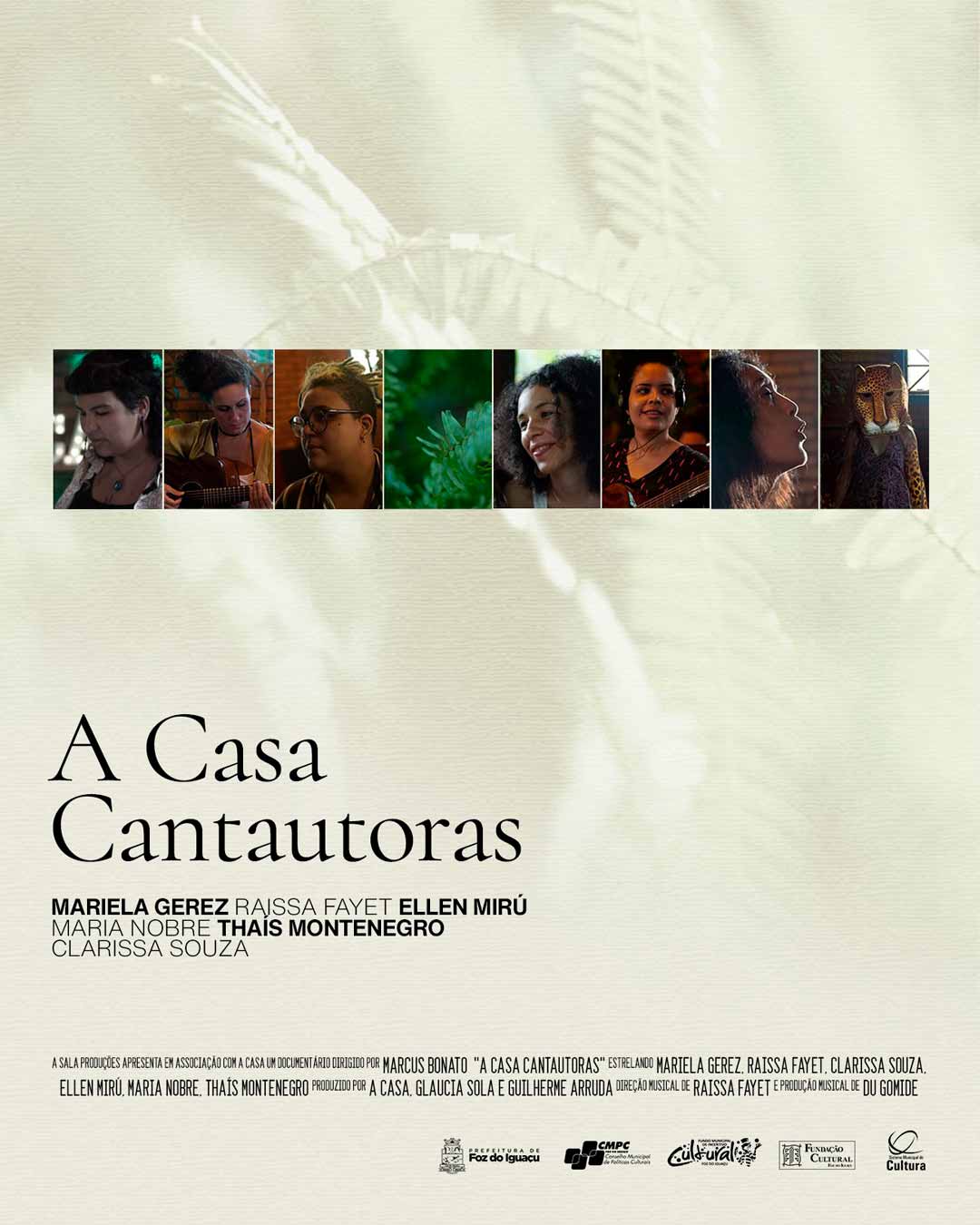 Em Foz do Iguaçu, a Casa Foz se transforma em refúgio cultural para cinco cantautoras — Ellen Mirú, Maria Nobre, Thaís Montenegro, Clarissa Souza e Mariela Gerez. Juntas, elas compartilham o processo de criação e gravação de suas músicas autorais, sob produção de Du Gomide e direção artística de Raissa Fayet. Um encontro de vozes femininas que celebram a força, a autonomia e a resistência na música independente.